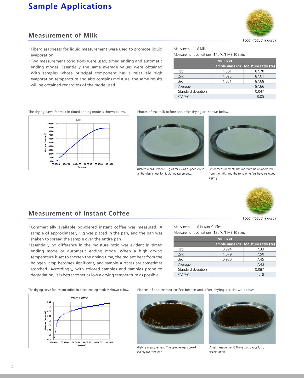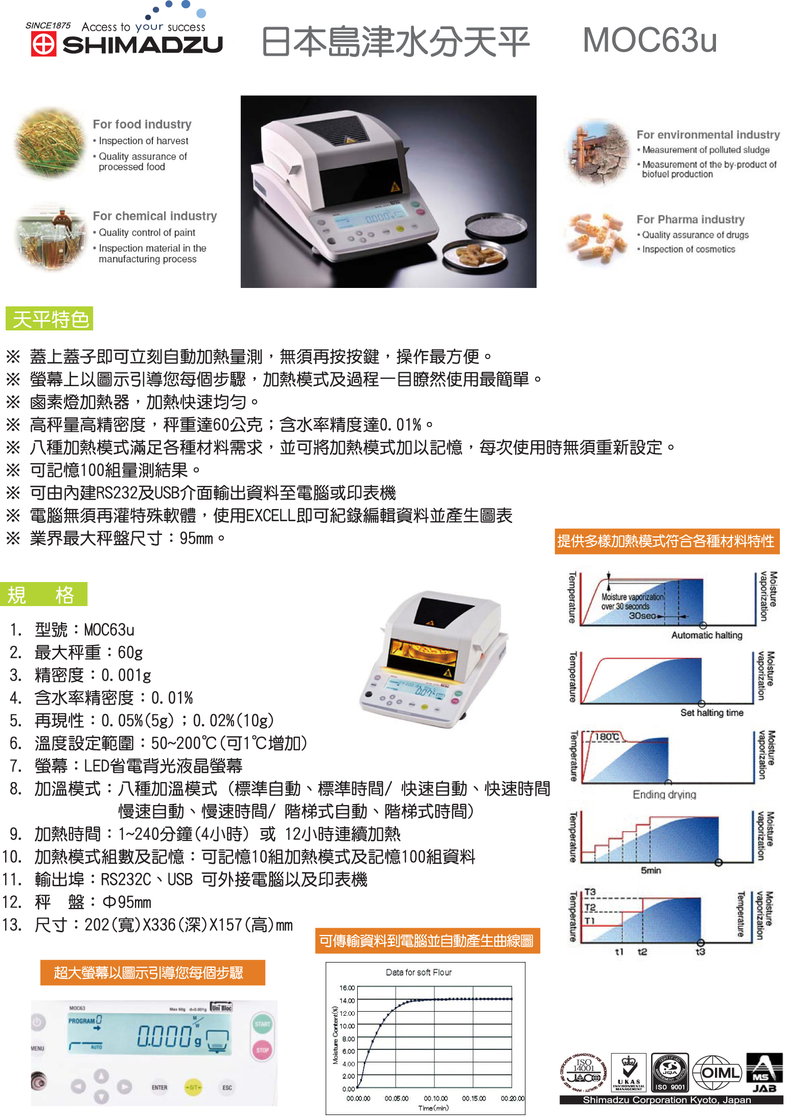 適用領域: 食品業、塑膠原料、化工原料、高科技業、生物科技、藥廠…等研發、實驗室品管、專業水分天平/水份計/水分儀。